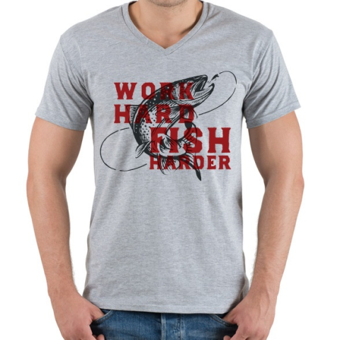 1 kép PRINTFASHION Work Hard Fish Harder - Férfi V-nyakú póló - Sport szürke