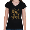 1 kép PRINTFASHION Work hard stay humble - Női V-nyakú póló - Fekete