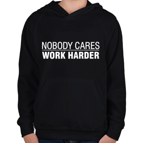 1 kép PRINTFASHION Work harder - Gyerek kapucnis pulóver - Fekete