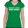 1 kép PRINTFASHION Work harder - Női V-nyakú póló - Zöld
