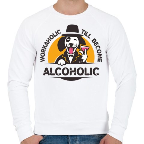 1 kép PRINTFASHION Workaholic - Alcoholic - Férfi pulóver - Fehér