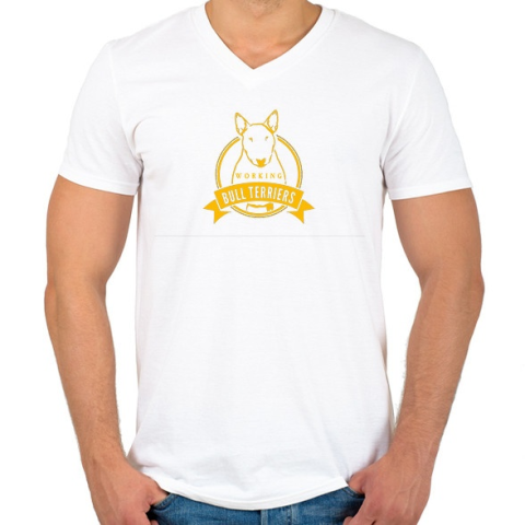 1 kép PRINTFASHION working bull terriers logo orange - Férfi V-nyakú póló - Fehér