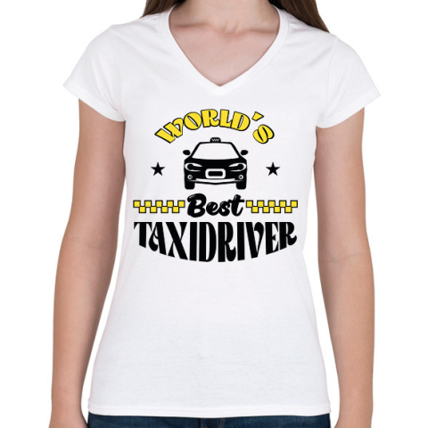1 kép PRINTFASHION World's best taxidriver - Női V-nyakú póló - Fehér