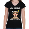 1 kép PRINTFASHION Wow Darling - Pop art - Női V-nyakú póló - Fekete