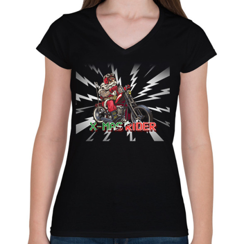1 kép PRINTFASHION X-MAS RIDER - Női V-nyakú póló - Fekete