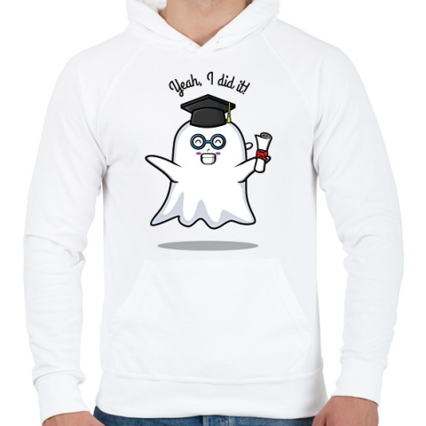 1 kép PRINTFASHION Yeah, I did it! - Diplomás minta - Férfi kapucnis pulóver - Fehér
