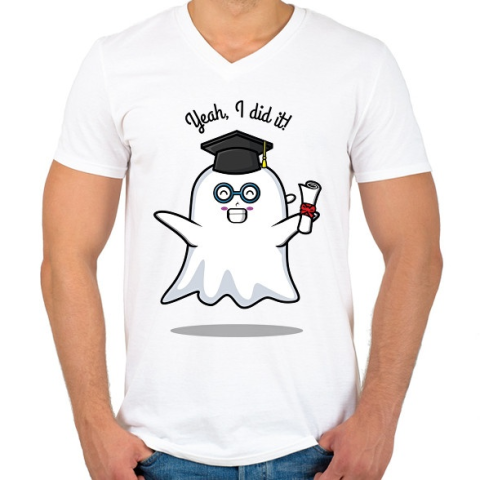 1 kép PRINTFASHION Yeah, I did it! - Diplomás minta - Férfi V-nyakú póló - Fehér