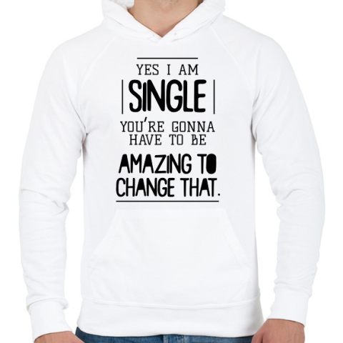 1 kép PRINTFASHION Yes I am single - Férfi kapucnis pulóver - Fehér