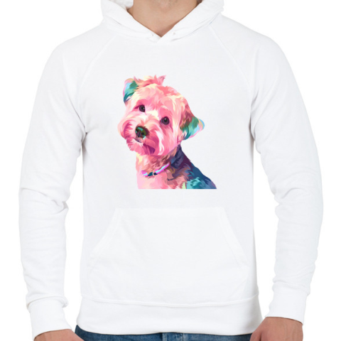 1 kép PRINTFASHION Yorkie - Férfi kapucnis pulóver - Fehér