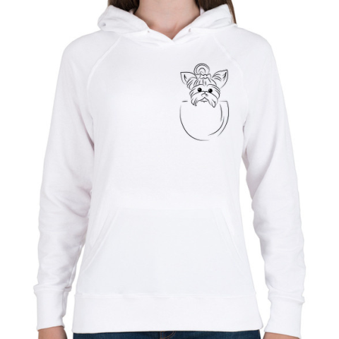 1 kép PRINTFASHION Yorkie in the pocket - Női kapucnis pulóver - Fehér