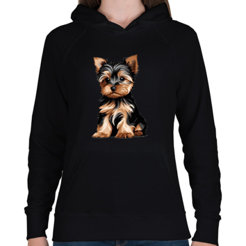 1 kép PRINTFASHION Yorkie kutyus - Női kapucnis pulóver - Fekete