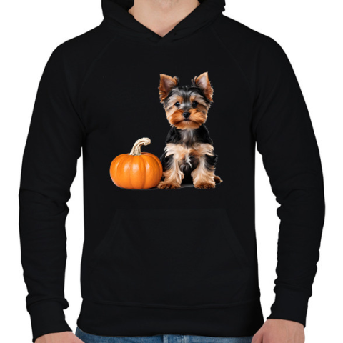 1 kép PRINTFASHION yorkie kutyus tökkel - Férfi kapucnis pulóver - Fekete