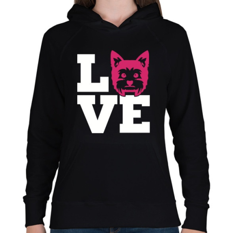 1 kép PRINTFASHION Yorkie LOVE - Női kapucnis pulóver - Fekete