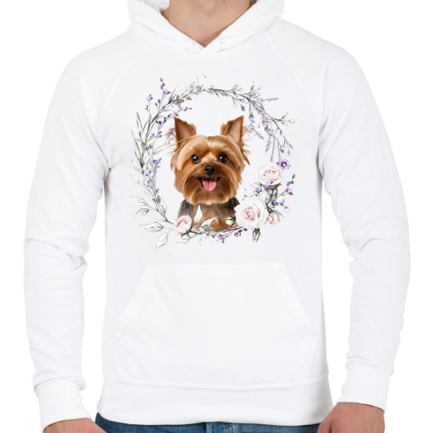 1 kép PRINTFASHION yorkie virágokkal - Férfi kapucnis pulóver - Fehér