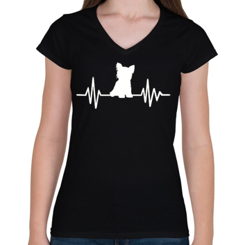 1 kép PRINTFASHION Yorkshire terrier - Női V-nyakú póló - Fekete