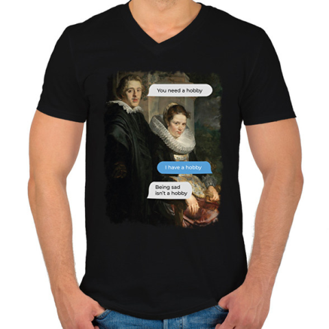 1 kép PRINTFASHION You need a hobby - Reneszánsz festmény - Férfi V-nyakú póló - Fekete