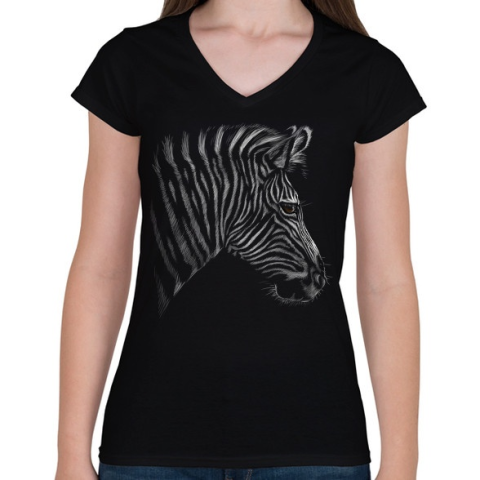 1 kép PRINTFASHION Zebra portré - Női V-nyakú póló - Fekete