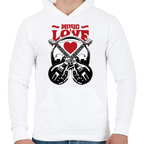 1 kép PRINTFASHION Zene és szerelem - Férfi kapucnis pulóver - Fehér