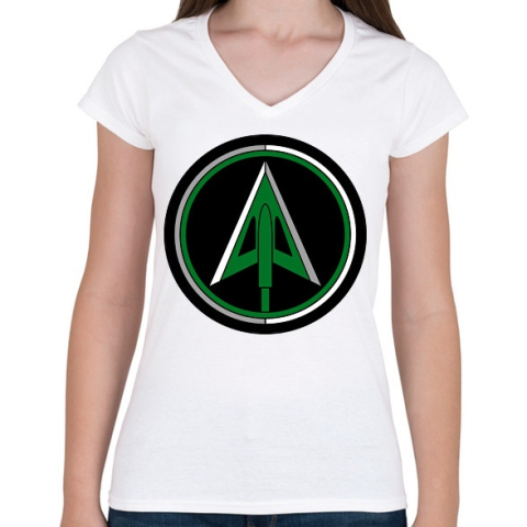 1 kép PRINTFASHION Zöld Íjász - Női V-nyakú póló - Fehér