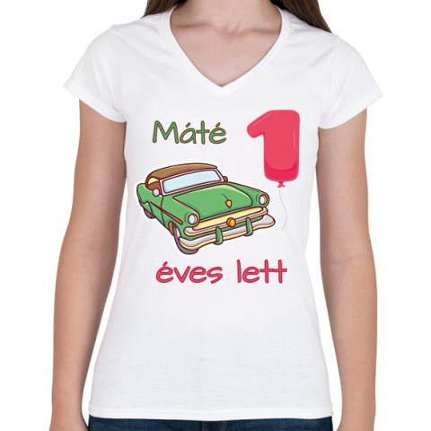 1 kép PRINTFASHION Zöld kocsi - Névvel, számmal - Női V-nyakú póló - Fehér