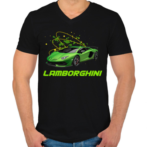 1 kép PRINTFASHION Zöld lamborghini - Férfi V-nyakú póló - Fekete