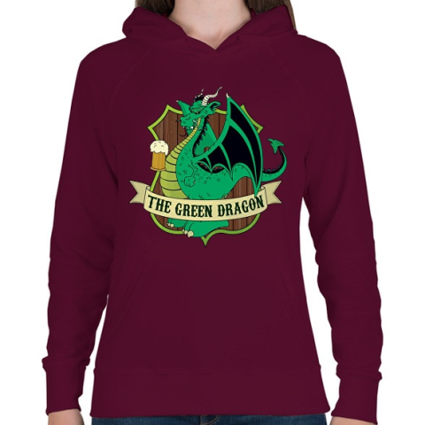 1 kép PRINTFASHION Zöld sárkány - Női kapucnis pulóver - Bordó