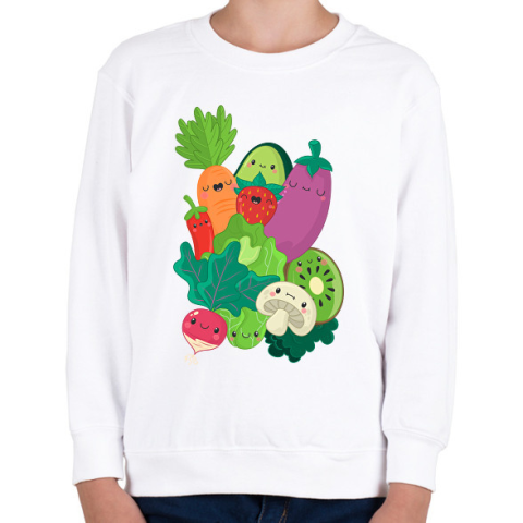 1 kép PRINTFASHION Zöldségek és gyümölcsök - Gyerek pulóver - Fehér