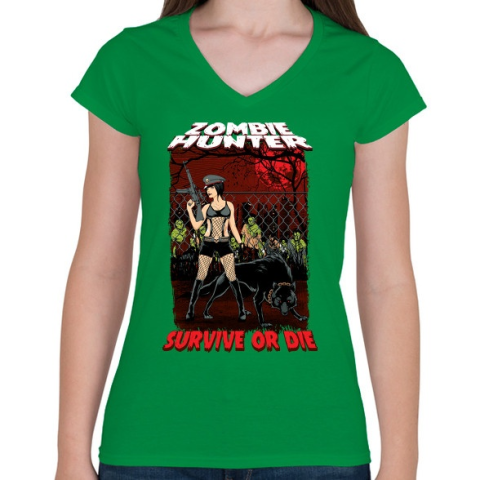 1 kép PRINTFASHION Zombi vadász - Női V-nyakú póló - Zöld