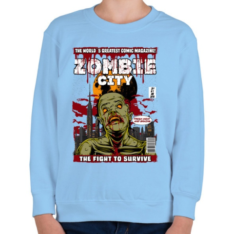 1 kép PRINTFASHION Zombi város - Gyerek pulóver - Világoskék