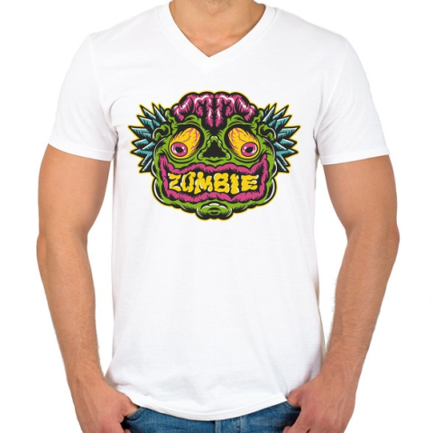 1 kép PRINTFASHION Zombie face - zombi arc graffiti - Férfi V-nyakú póló - Fehér