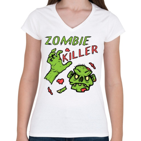 1 kép PRINTFASHION Zombie Killer - Női V-nyakú póló - Fehér
