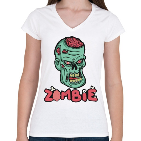1 kép PRINTFASHION Zombie - Női V-nyakú póló - Fehér