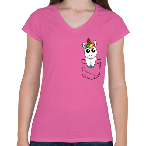 1 kép PRINTFASHION Zseb unikornis - Női V-nyakú póló - Rózsaszín