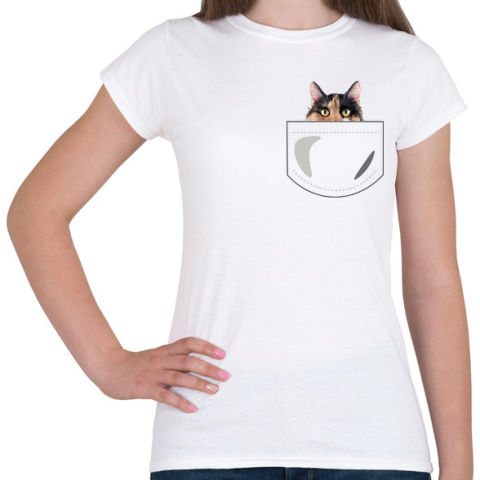 1 kép PRINTFASHION Zsebes macska - Női póló - Fehér