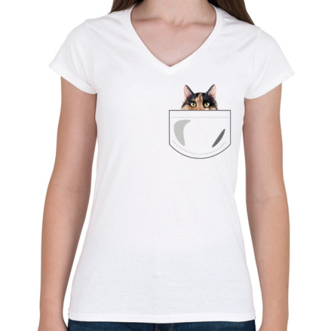 1 kép PRINTFASHION Zsebes macska - Női V-nyakú póló - Fehér