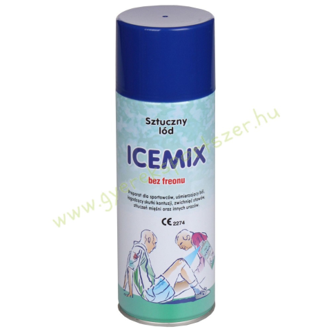 Fagyasztó, jegelő spray 400 ml - Icemix Termékjellemzők:• Kiszerelés: 400 ml• Típus: jegelő/fagyasztó spray• Használat: sport sérülések esetén• Márka: IceMix Az IceMix fagyasztó spray sporttevékenységek során keletkező húzódások, zúzódások, ízületi és