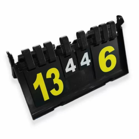 Pingpong eredményjelző – asztali, 0–31-ig, sárga számlap – PRO-Sport Termékjellemzők:• Típus: univerzális, asztali eredményjelző• Skála: 0–31• Méret: 39 × 21,5 cm• Számlap mérete: 9,5 × 9,5 cm• Anyag: műanyag szerkezet, papír számlapok• Szín: sárga számla