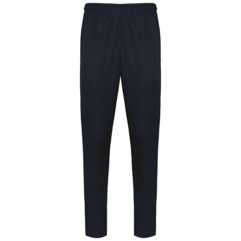 FELNŐTT TRÉNINGNADRÁG 100% matt poliészter interlock Slim fit szabás 2 cipzáras oldalsó zseb Rugalmas derékrész kerek húzózsinórral és gumi végződéssel a belső derékrészen Cipzáras nadrágszárak dupla tűs befejezéssel Kitéphető márkacímke a könnyű