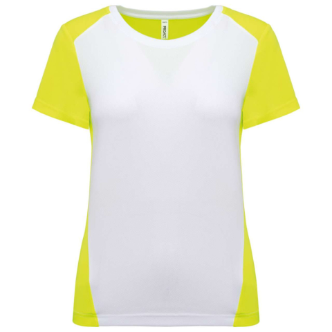 LADIES' ECO-FRIENDLY TWO-TONE SPORT T-SHIRT 100% használat után újrahasznosított „birdseye” poliészter Könnyű, gyorsan száradó anyag Egyenes szabás Kerek nyakkivágás megerősített szalaggal a nyakon Bevarrt (set-in) ujjak Kontrasztos betétek a váll