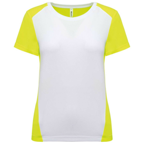 LADIES' ECO-FRIENDLY TWO-TONE SPORT T-SHIRT 100% használat után újrahasznosított „birdseye” poliészter Könnyű, gyorsan száradó anyag Egyenes szabás Kerek nyakkivágás megerősített szalaggal a nyakon Bevarrt (set-in) ujjak Kontrasztos betétek a váll