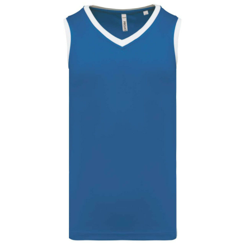 FÉRFI KOSÁRLABDA MEZ 100% birdseye poliészter V-nyakú kivitel Kontrasztos szegély a gallérnál és a karkivágásoknál Kétsoros varrás az alsó szegélynél Kitéphető márkajelzés SMLXL2XL3XL4XLTesthossz (A)74.5076.578.580.582.584.586.5Mellbőség (B)5154576