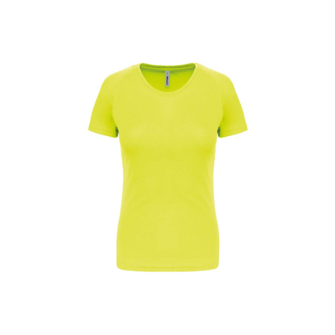 LADIES' SHORT-SLEEVED SPORTS T-SHIRT 100% poliészterGyorsan száradó könnyű anyagKörnyakas, nyakpánttalRaglán ujjak külső varrássalDupla tűzésű kivitel a nyakon, a mandzsettákon és a szegélyenSTANDARD 100 by OEKO-TEX® N° CQ 1007/7, IFTH tanúsítvánnyal X