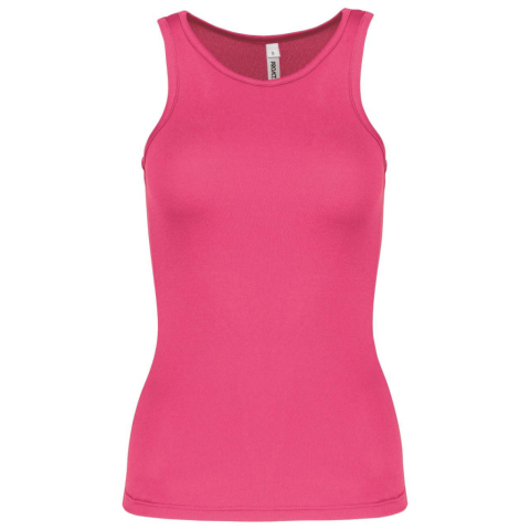 LADIES' SPORTS VEST 100% poliészterGyorsan száradó könnyű anyagSporthátú fazonSzegőpántos nyak és karkivágásDupla tűzésű kivitel a szegélyenSTANDARD 100 by OEKO-TEX® N° CQ 1007/7, IFTH tanúsítvánnyal XSSMLXLTesthossz (A)61.2563.2565.2567.2569.25Mellbős