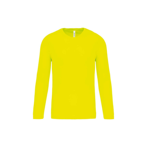 MEN'S LONG-SLEEVED SPORTS T-SHIRT 100% poliészterGyorsan száradó könnyű anyagKörnyakas, nyakpánttalDupla tűzésű kivitel a nyakon, a mandzsettákon és a szegélyenSTANDARD 100 by OEKO-TEX® N° CQ 1007/7, IFTH tanúsítvánnyal SMLXL2XLTesthossz (A)68.7570.757