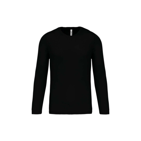 MEN'S LONG-SLEEVED SPORTS T-SHIRT 100% poliészterGyorsan száradó könnyű anyagKörnyakas, nyakpánttalDupla tűzésű kivitel a nyakon, a mandzsettákon és a szegélyenSTANDARD 100 by OEKO-TEX® N° CQ 1007/7, IFTH tanúsítvánnyal SMLXL2XLTesthossz (A)68.7570.757
