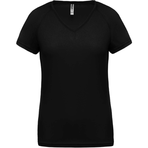 Proact Női rövid ujjú V-nyakú sportpóló, 100% poliészterGyorsan száradó szövetPántos V-nyakRaglán ujjak külső varrássalDupla tűzésű kivitel a mandzsettákon és a szegélyenSTANDARD 100 by OEKO-TEX® N° CQ 1007/7, IFTH tanúsítvánnyal XSSMLXL2XLTesthossz (A