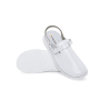 Speciális membránnal bevont marhabőrből készült, megelőző lábbeli, amely megkönnyíti a tisztítást, fertőtlenítést és karbantartást. Zárt felső, kétfunkciós pánt a sarokra helyezve. Természetes bőr béléssel. Csúszásgátló faragott alsó poliuretánból, belső