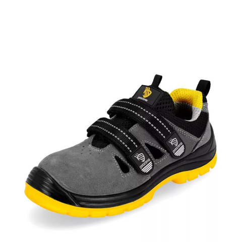 Felsőrész: velúr bőr felsőrész tépőzáras záródássalBélés: légáteresztő szövet, párnázott bokarészTalpbetét: textil borítású PU talpbetétOrrmerevítő: acélTalp: antisztatikus, olajálló, csúszásmentes kétrétegű PU/PU