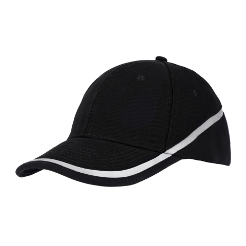 DOBBELT napellenzős sapka 100% vastag, fésült pamutból készült. Magas minőségű, 6 panelből álló sapka, gyárilag ívelt napellenzővel és merevített elülső panelekkel. Hímzett szellőzőnyílások biztosítják a megfelelő légáramlást. Fényvisszaverő elemekkel ell