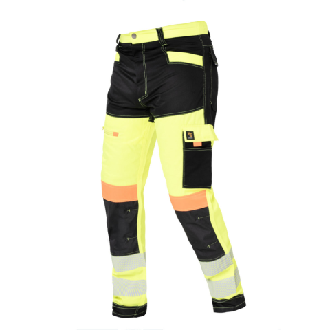 Nadrág kiváló minőségű anyagból, összetétele: 55% pamut és 45% poliészter, grammsúly 235 g/m^2. Számos funkcionális zsebük van, többek között: két elülső zseb, egy tépőzáras füllel borított oldalzseb, egy cipzáras combzseb, oldalsó szerszámzsebek és két h